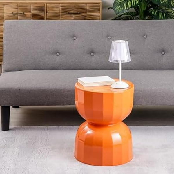 Baroni Home Modern Acrylic Hourglass Stool, Round Hexagonal Polycarbonate Design Stool for Living Room, Bedroom, Kitchen, 36 x 36 x 45 cm (Orange)