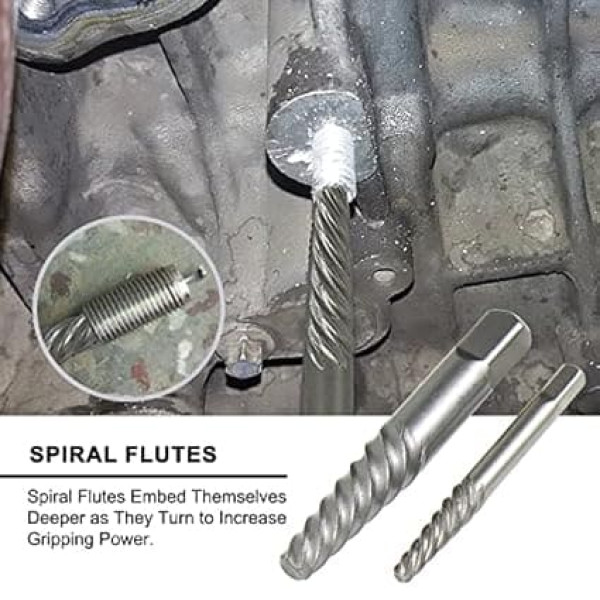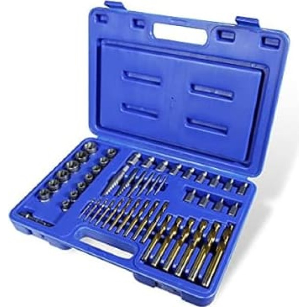 13-piece Cr-Mo screw remover set with sizes: 1/4 inch - 5/16 inch (8 mm) - 3/8 inch - 10 mm - 7/16 inch (11 mm) - 12 mm - 1/2 inch - 13 mm - 9/16 inch (14 mm) - 5/8 inch (16 mm) - 17 mm - 11/16 inch - 3/4 inch (14 mm) 9mm) Made of chrome-molybdenum steel, 3/8 inch hexagonal drive; 6 pieces Cr-Mo screw extractor sizes: 1#, 2#, 3#, 4#, 5#, 6# 16 pieces drill bits made of high-speed steel sizes: 5/64 inches, 7/64 inches, 1/8 inches, 5/32 inches, 3/16 inches, 7/32 inches, 1/4 inches, 9/32 inches, 19/64 inches, 5/16 inches, 11/32 inches, 3/8 inches, 13/32 inches, 7/16 inches, 15/32 inches, 1/2 inches 13 pieces Cr-Mo extraction bits: 1/8\