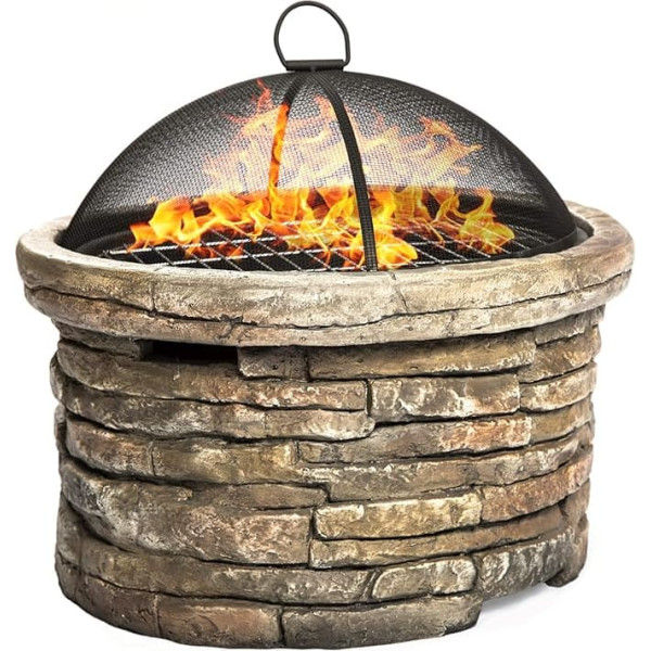 The majestic design with cylindrical frame is practical and practical and can be used with charcoal, logs, coal and wood. Beautifully rounded with real stone effect, perfect for adding warmth to a garden, yard, patio, or similar areas A clever dual fire pit - can be used as a fire pit and grill A safety net lid allows you to watch the burning fire, and wraps around the fire for safety and prevents sparks and debris from flying out. The poker can be used for removing the grid cover as well as for rearranging logs or coal For your convenience, the following accessories are included: poker, grill, safety net lid, charcoal frame, clear and precise instructions for easy self-assembly, waterproof protective cover to protect against dust, leaves and rain The Samui has an Ohio Rubble design and is made from Eco-Stone composite fiber. In addition, it is durable and rust resistant with a heat resistant frame and steel shell, with a black powder coating. Dimensions: diameter 54 cm x height 49 cm › See more product details