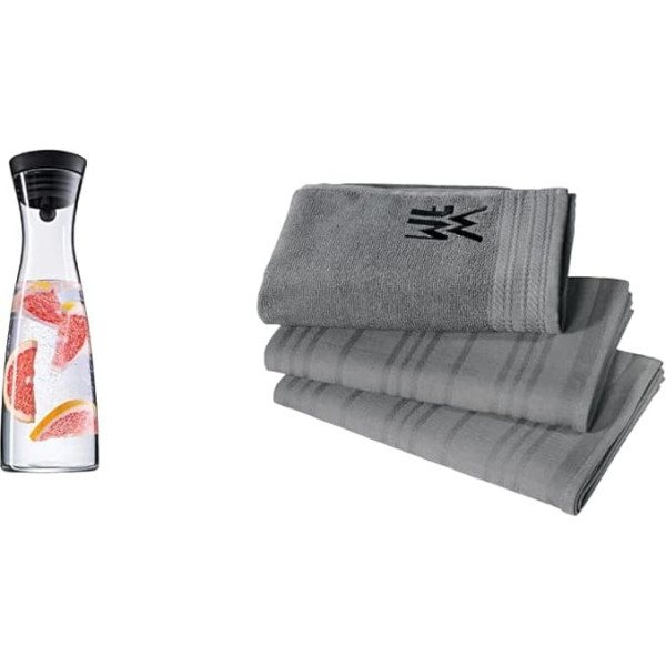 WMF Basic Water Carafe 1.5 Litres, Glass Carafe with Lid, Silicone Lid, CloseUp Closure & Kitchen Towel Set, 3 Pieces, Towel, Tea Towel, Cotton