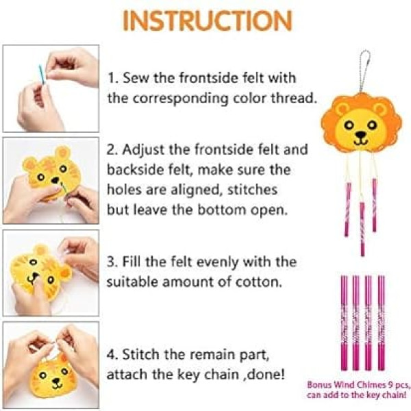 [Cute Animal Craft Kit] You will receive 12 pairs of felt animal heads, 4 bundles of thread, 9 pieces wind chimes, 4 pieces 7 cm sewing needles, 4 pieces 5 cm sewing needles, 10 pieces key rings, 1 piece box and 1 batch of cotton. Skill development activity: This great DIY craft can not only keep children away from electronics, but also help them develop creativity, patience and imagination, strengthen focus, concentration, practical skills and improve drawing skills. [Easy to play] You can easily DIY the sewing kits by yourself by following the instruction manual. And because of the pre-punched holes in the felts, it is very suitable for beginners. Wide application: they are ideal craft gifts for friends, families, children and students on birthdays, children's days, New Year's days and Christmas. They can also be used as educational toys at school, school project and camping lessons. [Complete Sewing Tools] Plastic Sewing Needles - Securely sew the animal shaped felts together. Embroidery threads - Use suitable colourful embroidery threads to sew the fabric together. Fixed position needle - fix the fabric and make sewing easier. › See more product details