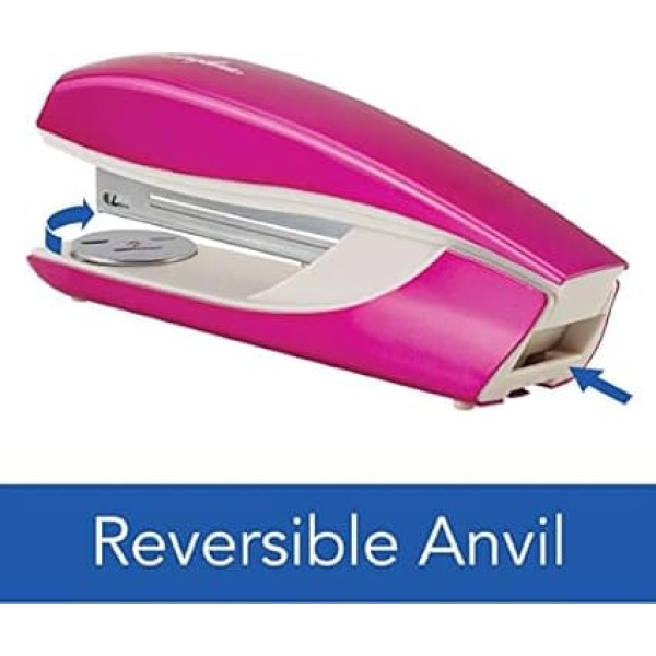 DURABLE PERFORMANCE - Keep up with the demands of your busy office. This bright pink metal stapler is made for lasting performance and can be used at least 20,000 times. JAM FREE TECHNOLOGY - No need to deal with a jammed stapler. With our patented Direct Impact Technology, we always guarantee you a perfect, jam-free staple. Desktop Use - Keep all your stapling tools at hand. The top loading stapler holds a full strip of 210 staples, features a built-in staple remover and sits comfortably on your desk. 40 SHEETS STACKING - Perfect for your biggest projects, staple up to 40 sheets at a time. When stapling 2-25 pages Swingline S.F. 4 staples. For larger jobs, use Swingline high-capacity staples. Stapling and Pinning - Customize the way you staple. Unlock the stapler to staple papers on soft surfaces, or adjust the anvil to create temporary staples that feature for easy removal. › See more product details; Product description The Swingline NeXXt Series WOW Stapler in bright pink with a polished metallic finish features durable metal construction for long lasting performance. Patented Direct Impact technology guarantees a perfect jam-free staple. Table stapler staples up to 40 sheets at a time. The top cap opens and locks securely at 180° to stay open when reloading the staples. The stapler opens for stapling so you can easily pin items such as flyers and posters on soft surfaces. Adjustable anvil, the metal plate at the base of the stapler, rotates with the push of a button to create temporary staples that indicate easy removal from documents. Designed to work at least 20,000 times for reliable, long-term use. Stapler for a full strip of 210 staples. Starter kit staples is included. Built-in staple remover for added convenience. For best results, use Swingline S.F. 4 staples when stapling 2-25 sheets; use high capacity staples of 5/16\; Product description The Swingline NeXXt Series WOW Stapler in bright pink with a polished metallic finish features durable metal construction for long lasting performance. Patented Direct Impact technology guarantees a perfect jam-free staple. Table stapler staples up to 40 sheets at a time. The top cap opens and locks securely at 180° to stay open when reloading the staples. The stapler opens for stapling so you can easily pin items such as flyers and posters on soft surfaces. Adjustable anvil, the metal plate at the base of the stapler, rotates with the push of a button to create temporary staples that indicate easy removal from documents. Designed to work at least 20,000 times for reliable, long-term use. Stapler for a full strip of 210 staples. Starter kit staples is included. Built-in staple remover for added convenience. For best results, use Swingline S.F. 4 staples when stapling 2-25 sheets; use high capacity staples of 5/16\; The Swingline NeXXt Series WOW Stapler in bright pink with a polished metallic finish features durable metal construction for long lasting performance. Patented Direct Impact technology guarantees a perfect jam-free staple. Table stapler staples up to 40 sheets at a time. The top cap opens and locks securely at 180° to stay open when reloading the staples. The stapler opens for stapling so you can easily pin items such as flyers and posters on soft surfaces. Adjustable anvil, the metal plate at the base of the stapler, rotates with the push of a button to create temporary staples that indicate easy removal from documents. Designed to work at least 20,000 times for reliable, long-term use. Stapler for a full strip of 210 staples. Starter kit staples is included. Built-in staple remover for added convenience. For best results, use Swingline S.F. 4 staples when stapling 2-25 sheets; use high capacity staples of 5/16\