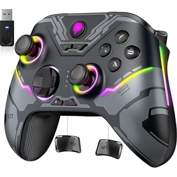 7 RGB light: EasySMX X15 controller PC has adjustable RGB light on the joysticks and handles, with 7 colours and 2 light modes. Bluetooth / 2.4G / cable: wireless controller PC has 3 connection methods: 2.4G USB receiver (PC) and Bluetooth (switch, Android, iOS and tablet). If you change connection method, you need to switch the appropriate mode. Hall triggers and joysticks: the double hall triggers and joysticks ensure more precise control. No dead zone, no drift. 1000 mAh battery: gaming controller PC is built-in with 1000 mAh lithium battery. The battery life is over 20 hours. PROGRAMMABLE BUTTONS: Two programmable buttons on the bottom of the controller: M1 M2, easy one-click operation, let the player play instantly and enjoy the fun. Note: The controller is not compatible with Xbox Series, but you can play Xbox games on PC. › See more product details
