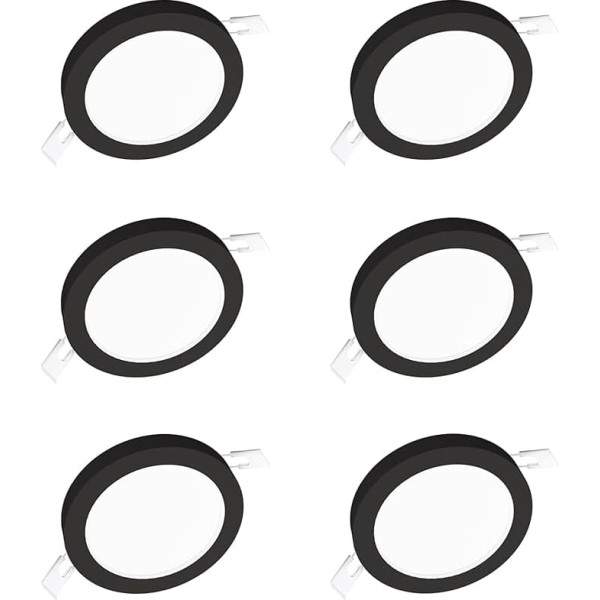 SSC-LUXon Set of 6 Voralo surface-mounted spotlights and recessed spotlights, black, flat, round, 4 W downlight, warm white, 2700 K, IP20, interiors, 230 V
