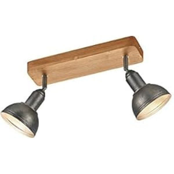 Trio Leuchten Delhi 803400267 Ceiling Light Metal Matt Nickel Antique Base Wood Excl. 2x E14 2-Bulb Beam