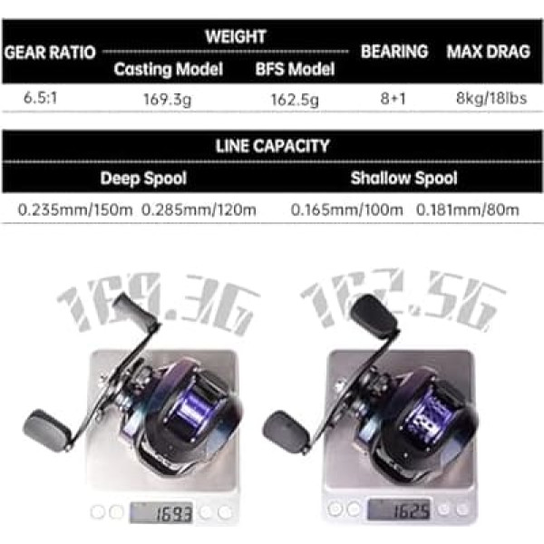 10-Scheiben-Magentic-Bremssystem und 30-poliges, mikroverstellbares Zifferblatt for superweite Wurfweiten Flache und tiefe 2 Spulen optional, hohlgeschnitztes Design, nur 10,9 g (flache Spule) /17,8 g (tiefe Spule). Das Design-Gear-System sorgt for ein leichteres Aufrollen und ist stark gegen schwere Belastungen bis zu 18 Pfund (nur Deep Spool). Das Kohlefaser-Bremssystem sorgt for eine leistungsstarke Bremsleistung Blau / Schwarz / Lila Farbwechselfarbe, magische Farben, Sie können verschiedene Farben unter verschiedenen Winkeln und bei unterschiedlicher Beleuchtung sehen › See more product details; Product description SpezifikationenÜbersetzungsverhältnis6,5:1AngelmethodeKöderwerfenPositionHochsee-Bootsangeln, Hochsee-Felsenangeln, Hochsee-Strandangeln, SEE, Fluss, Stausee, BachModellBFS Baitcasting-Rolle AngelrolleModell verwendenLinke/rechte HandFarbeSchwarz / Blau / Lila FarbwechselLager8+1+1BBGewicht162,5 g (Set mit flacher Spule)Max Drag8 kgSchnurkapazität (flache Spule)0,165 mm/100 m 0,181 mm/80 mSchnurkapazität (tiefe Spule)0,235 mm/150 m 0,285 mm/120 mGewicht (flache Spule)10,9 gGewicht (tiefe Spule)17,8g; Product description SpezifikationenÜbersetzungsverhältnis6,5:1AngelmethodeKöderwerfenPositionHochsee-Bootsangeln, Hochsee-Felsenangeln, Hochsee-Strandangeln, SEE, Fluss, Stausee, BachModellBFS Baitcasting-Rolle AngelrolleModell verwendenLinke/rechte HandFarbeSchwarz / Blau / Lila FarbwechselLager8+1+1BBGewicht162,5 g (Set mit flacher Spule)Max Drag8 kgSchnurkapazität (flache Spule)0,165 mm/100 m 0,181 mm/80 mSchnurkapazität (tiefe Spule)0,235 mm/150 m 0,285 mm/120 mGewicht (flache Spule)10,9 gGewicht (tiefe Spule)17,8g; SpezifikationenÜbersetzungsverhältnis6,5:1AngelmethodeKöderwerfenPositionHochsee-Bootsangeln, Hochsee-Felsenangeln, Hochsee-Strandangeln, SEE, Fluss, Stausee, BachModellBFS Baitcasting-Rolle AngelrolleModell verwendenLinke/rechte HandFarbeSchwarz / Blau / Lila FarbwechselLager8+1+1BBGewicht162,5 g (Set mit flacher Spule)Max Drag8 kgSchnurkapazität (flache Spule)0,165 mm/100 m 0,181 mm/80 mSchnurkapazität (tiefe Spule)0,235 mm/150 m 0,285 mm/120 mGewicht (flache Spule)10,9 gGewicht (tiefe Spule)17,8g