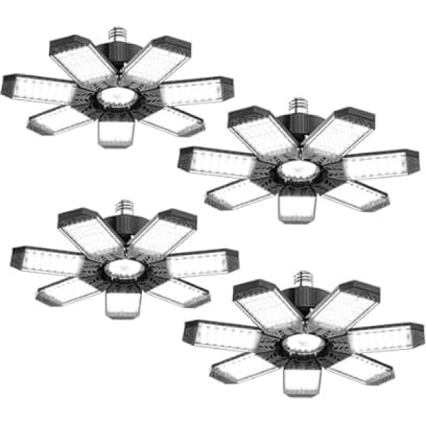 Super bright LED garage lamp: this LED workshop ceiling light has 7 super bright, adjustable LED heads with 248 high-quality LED lamps, 20,000 lumens, 6500 K daylight and CRI>80 colour rendering index, LED workshop light to provide you with the best interior lighting and save energy LED garage light with 7 deformable panels design: our super bright 200 W garage lamp LED has 7 panels that are adjustable from 0° to 90°. LED workshop lamp with 7 ultra-bright adjustable LED ceiling lamp panels + 1 central luminous surface to achieve 360° full coverage lighting, you can use the entire garage Excellent Heat Dissipation Design The ABS aluminum heat sink combined with the hollow leaf design ensures that the workshop lamp LED can dissipate heat efficiently. This not only ensures the best performance of the LED garage lighting, also allows a service life of the LED lamp of up to 50,000 hours Easy to install workshop lamp: our 200W LED garage lamp are compatible with standard E26/E27 screw bases and do not require complicated tools or cables, but are simply screwed into a normal lamp socket Wide application garage lighting: LED garage light workshop lighting is suitable for lighting large areas such as garages, barns, sports stadiums, warehouses, shops, sports halls, exhibition rooms, basements, attics and basements. › See more product details