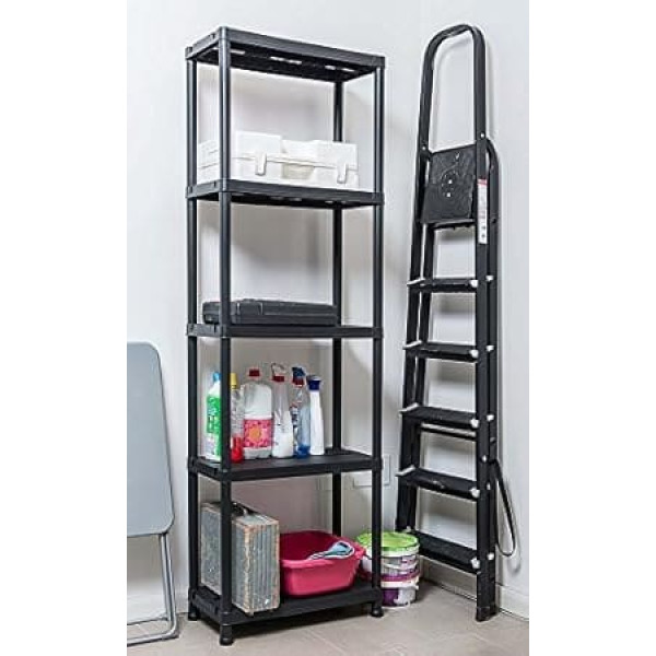Ondis24 Plastic Shelving Unit 15 Inch 5 Shelves Heavy Duty Shelving Unit with Wall Mount and Connectors - Pack of 4 Practical household shelf suitable for all rooms, easy to assemble and yet robust and durable Total load capacity per shelf up to 180 kg, each shelf can hold 30 kg, bottom shelf up to 60 kg thanks to the fifth base Freely modulable, multiple shelves can be connected, floors can be omitted Dimensions: approx. 71 x 35 x 180 (H) cm. Weight: approx. 7.5 kg. Height of the feet approx. 7 cm › See more product details; Product description Product description Standing tool boxes, folders that have nothing to look for in the office but are still needed and the children's toys that have become dirty. But where to put it? With our anthracite-coloured plastic shelf, we offer the optimal helper to store your items in order. With a size of just approx. 71 x 35 x 180 (H) cm, it fits into any small niche and, thanks to its low weight of only approx. 3.3 kg easily to position. In addition, this shelf is UV and weather resistant and offers 5 closed plastic shelves, which can be loaded with 60 kg, for the lowest floor, and each with 30 kg. So even slightly heavy suitcases or boxes can be placed on a usable surface of 61 x 35 x 39 (H) cm and a maximum weight of a total of 125 kg in this plastic shelf and help the boltless shelf to a safer stand. The 5 feet, allow a distance of approx. 7 cm from the floor and ensure that this boltless shelf can be used even in damp rooms. Thanks to a simple plug-in system, the pipes are inserted into the floors, several of these shelves can be combined to different sizes. The upper tube ends are neatly closed with the help of the included cover caps. In addition, the shelf connectors ensure that the shelves can be securely connected. Practical - the included wall brackets that allow the shelves to be securely screwed to the wall. The assembly is possible in just 10 minutes, without additional tools and the enclosed assembly instructions (English language not guaranteed). All measurements are approximate and refer to maximum external dimensions of the item. The shipping weight is also based on approximate information. If you need more detailed information, please contact our support. Safety Warning Please note: maximum weight 180 kg. Please refer to the assembly instructions and use the shelf only in dry rooms.; Product description Product description Standing tool boxes, folders that have nothing to look for in the office but are still needed and the children's toys that have become dirty. But where to put it? With our anthracite-coloured plastic shelf, we offer the optimal helper to store your items in order. With a size of just approx. 71 x 35 x 180 (H) cm, it fits into any small niche and, thanks to its low weight of only approx. 3.3 kg easily to position. In addition, this shelf is UV and weather resistant and offers 5 closed plastic shelves, which can be loaded with 60 kg, for the lowest floor, and each with 30 kg. So even slightly heavy suitcases or boxes can be placed on a usable surface of 61 x 35 x 39 (H) cm and a maximum weight of a total of 125 kg in this plastic shelf and help the boltless shelf to a safer stand. The 5 feet, allow a distance of approx. 7 cm from the floor and ensure that this boltless shelf can be used even in damp rooms. Thanks to a simple plug-in system, the pipes are inserted into the floors, several of these shelves can be combined to different sizes. The upper tube ends are neatly closed with the help of the included cover caps. In addition, the shelf connectors ensure that the shelves can be securely connected. Practical - the included wall brackets that allow the shelves to be securely screwed to the wall. The assembly is possible in just 10 minutes, without additional tools and the enclosed assembly instructions (English language not guaranteed). All measurements are approximate and refer to maximum external dimensions of the item. The shipping weight is also based on approximate information. If you need more detailed information, please contact our support. Safety Warning Please note: maximum weight 180 kg. Please refer to the assembly instructions and use the shelf only in dry rooms.; Product description Standing tool boxes, folders that have nothing to look for in the office but are still needed and the children's toys that have become dirty. But where to put it? With our anthracite-coloured plastic shelf, we offer the optimal helper to store your items in order. With a size of just approx. 71 x 35 x 180 (H) cm, it fits into any small niche and, thanks to its low weight of only approx. 3.3 kg easily to position. In addition, this shelf is UV and weather resistant and offers 5 closed plastic shelves, which can be loaded with 60 kg, for the lowest floor, and each with 30 kg. So even slightly heavy suitcases or boxes can be placed on a usable surface of 61 x 35 x 39 (H) cm and a maximum weight of a total of 125 kg in this plastic shelf and help the boltless shelf to a safer stand. The 5 feet, allow a distance of approx. 7 cm from the floor and ensure that this boltless shelf can be used even in damp rooms. Thanks to a simple plug-in system, the pipes are inserted into the floors, several of these shelves can be combined to different sizes. The upper tube ends are neatly closed with the help of the included cover caps. In addition, the shelf connectors ensure that the shelves can be securely connected. Practical - the included wall brackets that allow the shelves to be securely screwed to the wall. The assembly is possible in just 10 minutes, without additional tools and the enclosed assembly instructions (English language not guaranteed). All measurements are approximate and refer to maximum external dimensions of the item. The shipping weight is also based on approximate information. If you need more detailed information, please contact our support. Safety Warning Please note: maximum weight 180 kg. Please refer to the as