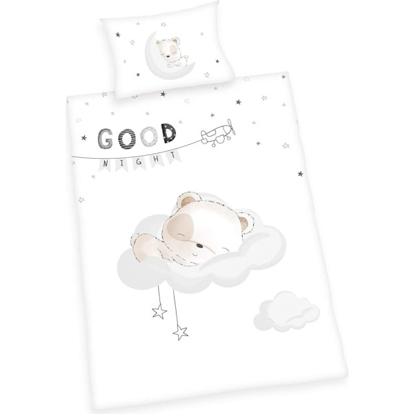 The ideal gift idea for any occasion: breathable toddler bedding with sleeping bear on a cloud for sweet dreams Manageable size for the little ones: ideal for use in the travel, cot and junior bed or the first large bed Quick and easy to put on: envelope envelope pillowcase, duvet cover with smooth zipper High-quality material: 100% cotton/renforcé, produced according to Oeko Tex Standard 100, bright colours, easy-care: washable at 60°C, tumble dryer-safe Box contents: 1 Herding bedding set, Sleeping Little Bear, 1 pillowcase 40 x 60 cm and 1 duvet cover 100 x 135 cm, colour: white › See more product details