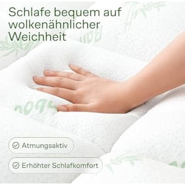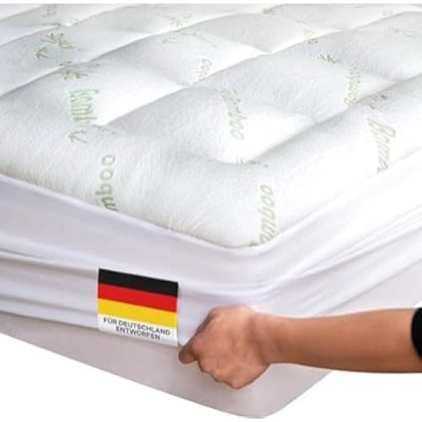 Ultra soft bamboo: the Niagara cooling mattress is made from 40% natural bamboo fibres and fits mattresses with a depth of 20-50 cm. This cooling pad for bed is gentle on sensitive skin, elastic, environmentally friendly and ultra-soft to the touch. IMPROVE YOUR MATTRESS This double (large) padded mattress topper brings 5 star hotel quality to your bedroom. The firm mattress topper has a size of 160 x 200 cm, is comfortable and breathable. LIKE SLEEPING ON CLOUDS Our cooling bed pad adds extra padding to possibly relieve back pain. The organic mattress topper is cool, sweat-absorbing and contains no harsh chemicals such as latex or formaldehyde. EASY TO USE: Our active cooling mattress topper has a deep pocket and stretchy sides to make it easier to put on thick mattresses. The firm mattress topper is machine washable and dries fluffy so sheets stay in place. SATISFACTION Experience 100% satisfaction with the best price mattress topper. Our pull-out mattress topper has a money back guarantee. Enjoy restful sleep today with a firm support › See more product details; Product description MAKES OLD MATTRESS NEW - Queen size mattress protector includes 2 queen size pillowcases 60 x 80 inches for 20 inch deep mattresses. Our alternative quilted down mattress protector is overfilled with alternative down fill and acts as a revitalizer for mattresses, don't throw away your old mattress, use our queen mattress protector. 1.871g Overfill - Sleeping on a Cloud - Our premium extra soft mattress protector offers unbeatable comfort and is like sleeping on a cloud. Ideal for people who want an extra pillow between them and the mattress and are looking for an extra thick quilted mattress protector or pillow. The mattress cover is also a protective mattress protector. 20\; Product description MAKES OLD MATTRESS NEW - Queen size mattress protector includes 2 queen size pillowcases 60 x 80 inches for 20 inch deep mattresses. Our alternative quilted down mattress protector is overfilled with alternative down fill and acts as a revitalizer for mattresses, don't throw away your old mattress, use our queen mattress protector. 1.871g Overfill - Sleeping on a Cloud - Our premium extra soft mattress protector offers unbeatable comfort and is like sleeping on a cloud. Ideal for people who want an extra pillow between them and the mattress and are looking for an extra thick quilted mattress protector or pillow. The mattress cover is also a protective mattress protector. 20\; MAKES OLD MATTRESS NEW - Queen size mattress protector includes 2 queen size pillowcases 60 x 80 inches for 20 inch deep mattresses. Our alternative quilted down mattress protector is overfilled with alternative down fill and acts as a revitalizer for mattresses, don't throw away your old mattress, use our queen mattress protector. 1.871g Overfill - Sleeping on a Cloud - Our premium extra soft mattress protector offers unbeatable comfort and is like sleeping on a cloud. Ideal for people who want an extra pillow between them and the mattress and are looking for an extra thick quilted mattress protector or pillow. The mattress cover is also a protective mattress protector. 20\