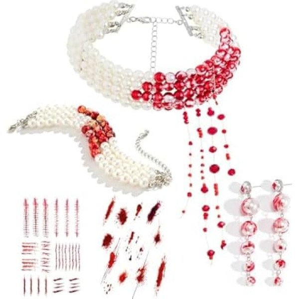 Product description Features: - Fashionable design: Zombie vampire theme, unique design, jewellery made of imitation blood drop bead necklaces that creates a strange and enchanting atmosphere and creates a mysterious aura for your Halloween or role play party. - Applicable occasions: Whether carnival party, Halloween party, theme party or masquerade, these accessories can make your look unique and show a unique fashion style. Specifications: Material: acrylic material. Colour: white and red. Package includes: 5-piece Gothic jewellery Halloween, consisting of a blood drop pearl necklace, a pearl bracelet, a pair of pearl earrings, 2 Halloween scar tattoos.; Product description Features: - Fashionable design: Zombie vampire theme, unique design, jewellery made of imitation blood drop bead necklaces that creates a strange and enchanting atmosphere and creates a mysterious aura for your Halloween or role play party. - Applicable occasions: Whether carnival party, Halloween party, theme party or masquerade, these accessories can make your look unique and show a unique fashion style. Specifications: Material: acrylic material. Colour: white and red. Package includes: 5-piece Gothic jewellery Halloween, consisting of a blood drop pearl necklace, a pearl bracelet, a pair of pearl earrings, 2 Halloween scar tattoos.; Features: - Fashionable design: Zombie vampire theme, unique design, jewellery made of imitation blood drop bead necklaces that creates a strange and enchanting atmosphere and creates a mysterious aura for your Halloween or role play party. - Applicable occasions: Whether carnival party, Halloween party, theme party or masquerade, these accessories can make your look unique and show a unique fashion style. Specifications: Material: acrylic material. Colour: white and red. Package includes: 5-piece Gothic jewellery Halloween, consisting of a blood drop pearl necklace, a pearl bracelet, a pair of pearl earrings, 2 Halloween scar tattoos.