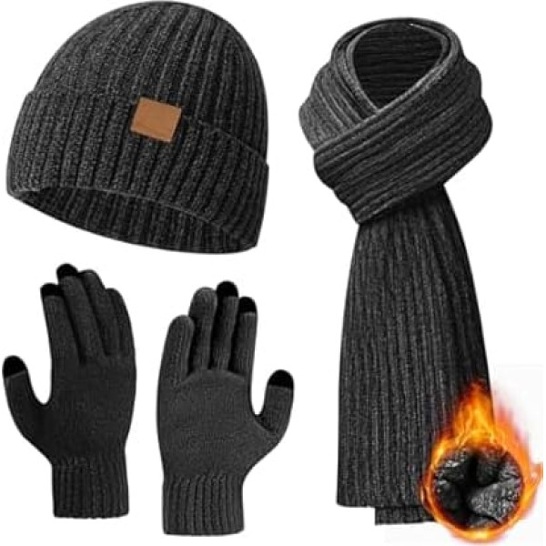 Unisex Hat Scarf Gloves Set Men Women Gloves Men's Winter Touch Screen Winter Hat Men's Knitted Hat Ski Hat Scarf Men's Winter Hat Scarf Set Gifts for Men Christmas
