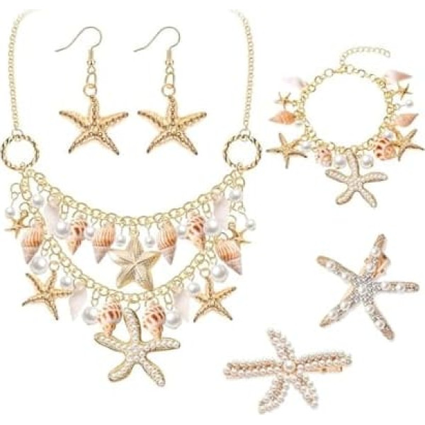 Meerjungfrau Kostüm Damen,Meerjungfrau Accessoires Damen,Seestern Muschelkette Armband Ohrringe Haarspange,Chunky Jewelry Damen,Meerjungfrau Muschel Schmuck Haarschmuck,Seascape Fotografie Zubehör