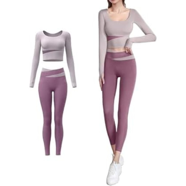 Hveuluop Gieen Women's Yoga Sets - Clothing Colour Blocking Long Sleeves Seamless Nude Tight Skinny Sport Quick Dry Running Fitness Suit