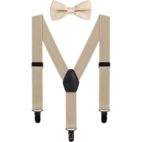Wanying Partner Look Braces and Bow Tie Set for Men, Women, Babies, Toddlers and Children – 3 Black Clips, Y-Shape, 2.5 cm, Highly Elastic Braces, Plain