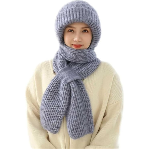 YJWZ Integrated Ear Protection, Windproof Hat Scarf, 2 in 1 Windproof Hat Scarf, Cute Hat Scarf Set for Women with Brooch, Winter Warm Knitted Hat, Hooded Scarf for Women