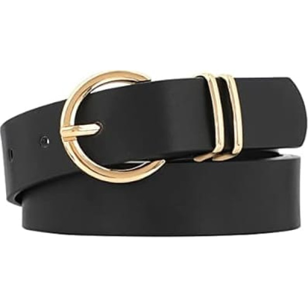 JasGood Women's Leather Belt for Jeans Trousers Dresses Fashion Gold Buckle Women's Leather Belt