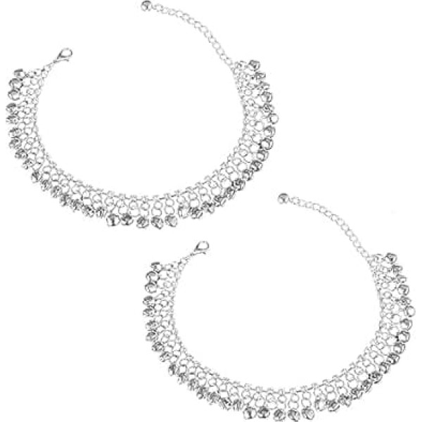 EQLEF Bell Anklet for Women Fashion Plated Diamond Bells Anklet for Women Pack of 2