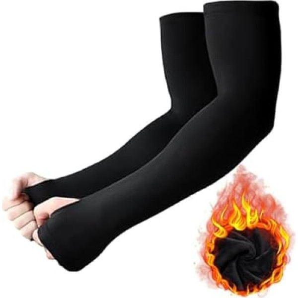 YLMYOLEMEI Long Arm Warmers, Arm Sleeves Winter for Men and Women, Black Arm Sleeves with Thumb Hole, Size M, Arm Warmers for Winter Cycling, Driving, Volleyball, Basketball, Running, Gaming