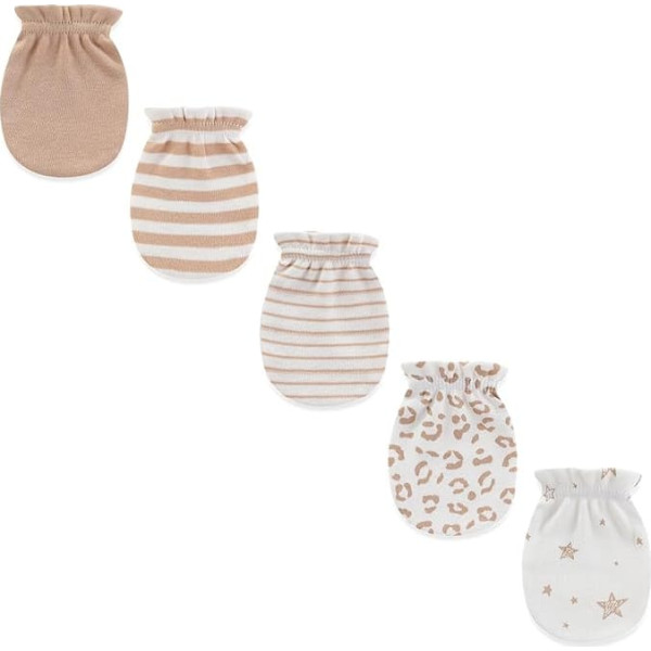 Ecojoy Newborn Baby Elastic Scratch Mitten 5 Pieces Tiny Baby Boy and Girl Gloves Scratch Mits 0-6 Months, Beige, Beige Gloves