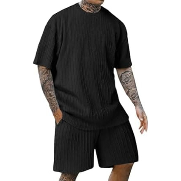 TIMELYE 2-Piece Men's Summer Outfit Plain Activewear Shorts and T-Shirt Set Leisure Short Sleeve Two Piece Beach Outfits Soft Oversized T-Shirts Lightweight Sports Leisure Suit Sportswear Men