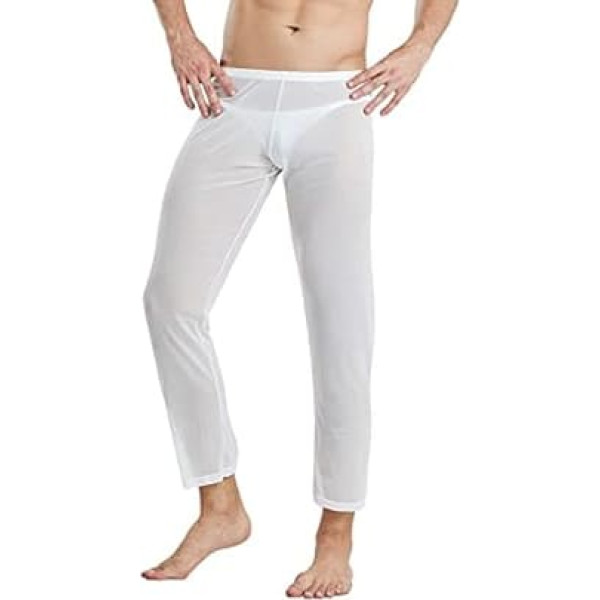 Men's Trousers Transparent Mesh Leggings Sleepwear Sexy Transparent Mesh Panty Trousers Sexy Men's Trousers Mesh Transparent Men's Mesh Transparent Long Trousers with Drawstring