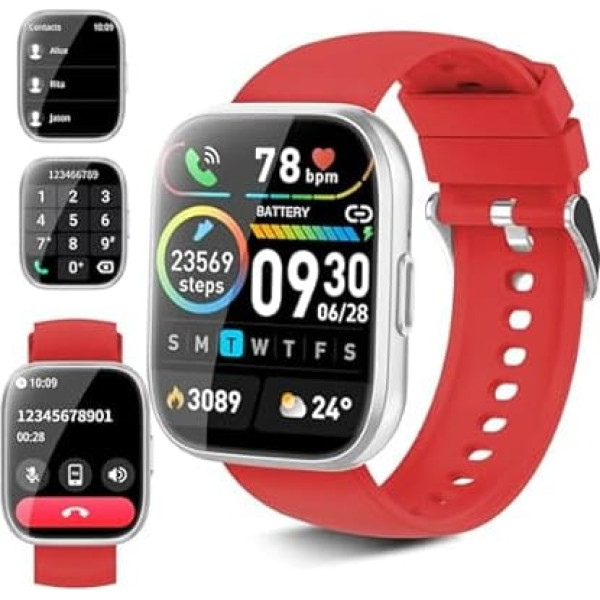 Smartwatch with phone function, notification: men's smartwatch has a built-in speaker microphone. In addition to the traditional information and call notification function, the women's smartwatch can also realise hands-free call answering, call rejection, adding contacts and displays. In addition, the smart watch can also provide other notifications (e.g. from Whats, Twitter, Facebook, Instagram, etc.). Large screen and individual dial: women's fitness watch has a large 1.85 inch full-touch sports watch with HD colour screen offer you excellent image quality and excellent visual experience. The compatible phone smartwatch has more than 100 dials to choose from and you can also choose your picture as a watch face such as your selfie or a photo of your child, family, pet, etc. 112 sports modes and IP68 waterproof: this fitness tracker offers over 100 indoor and outdoor sports modes, including walking, running, cycling, jumping, basketball, football and more to meet the needs of most sports enthusiasts. It records your training data, including steps, heart rate, calories and distance and creates your health report. With the IP68 waterproof rating, you can wear the watch when washing hands, sweating or running. Long-lasting battery and compatibility: Android smartwatch men's has a large 200 mAh battery that lasts 5-7 days on a 2-hour charge and up to 30 days in standby mode. You no longer have to worry about the battery when travelling. This fitness watch is compatible with most smartphones and supports iOS and Android, download and install the free \; Product description Smartwatch Men Women; Product description Smartwatch Men Women; Smartwatch Men Women