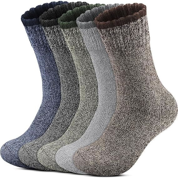 Reamphy 5 Pairs of Men's Thermal Socks, Winter Warm Socks, Merino Wool Socks, Thick Breathable Socks, Winter Socks, Hiking Socks for Hiking, Home, Leisure, Sports