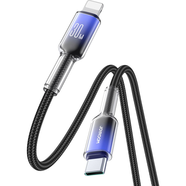 Kabeļa Crystal-Clear Series 30W USB-C - iPhone Lightning 1,2 m - melns
