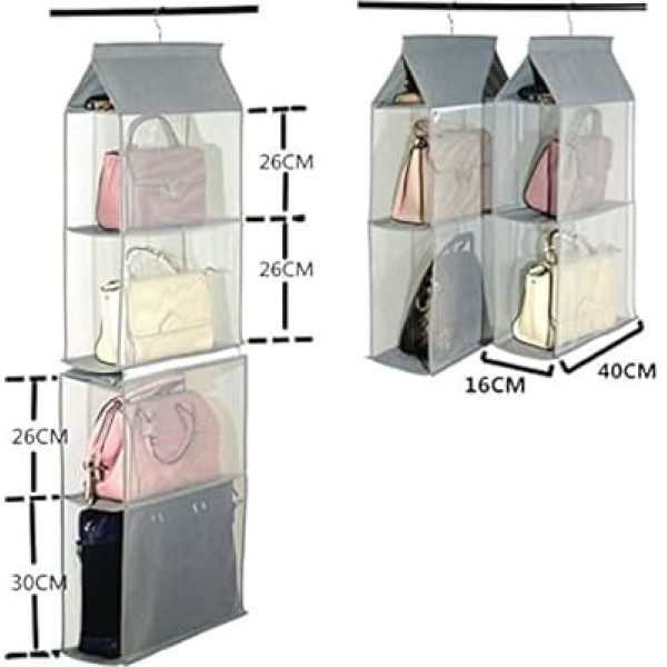 Measures 6.1 x 15.7 x 52.5 inches / 6 x 15.7 inches (W x D x H), 3 different colors, beige/grey/brown, more choice. Removable design - Adaptable for all types of cabinets, maximum use of vertical spaces, can be divided into 2 organisation cabinets, making it perfect for small cabinets. Greater mobility due to foldable design. Suitable for home and travel, easy to carry. Ideal for all types of storage space - cost effective and sufficient. 6 compartments can hold various things such as handbags, shoes, bags, sweaters, toys. The perfect solution for organizing handbags of any size. Keep your wardrobe clean and tidy. EASY TO HANG - Heavy duty metal hooks included, easy to hang on a standard closet rod. › See more product details; Product description Features: 6-compartment organiser. Color: Beige/Grey/Purple/Brown/Pink Size: 15.5 x 40 x 133.5 cm / 15.2 cm (W x D x H). Material: non-woven + polyester. Weight: 0.6 kg. Product features: Excellent quality, hanging cabinet can be applied to all cabinet types, maximum use of vertical space, durable and practical. Suitable for home and travel, foldable, easy to carry. You can see which items are stored, good organisation and keep the floor clean. Can be hung in your wardrobe, closet or behind the door. Super large capacity, max. 6 compartments provide space for different items. Product description: Organise your bags and purses. This hanging wardrobe is a good solution. Keep your cabinet tidy and clean. 6 compartments can hold various things such as handbags, shoes, bags, sweaters, toys. Includes sturdy metal hanger, easy to hang on the standard coat rack. Mesh design see through - the stored things are clearly visible to make the right selection and save time.; Product description Features: 6-compartment organiser. Color: Beige/Grey/Purple/Brown/Pink Size: 15.5 x 40 x 133.5 cm / 15.2 cm (W x D x H). Material: non-woven + polyester. Weight: 0.6 kg. Product features: Excellent quality, hanging cabinet can be applied to all cabinet types, maximum use of vertical space, durable and practical. Suitable for home and travel, foldable, easy to carry. You can see which items are stored, good organisation and keep the floor clean. Can be hung in your wardrobe, closet or behind the door. Super large capacity, max. 6 compartments provide space for different items. Product description: Organise your bags and purses. This hanging wardrobe is a good solution. Keep your cabinet tidy and clean. 6 compartments can hold various things such as handbags, shoes, bags, sweaters, toys. Includes sturdy metal hanger, easy to hang on the standard coat rack. Mesh design see through - the stored things are clearly visible to make the right selection and save time.; Features: 6-compartment organiser. Color: Beige/Grey/Purple/Brown/Pink Size: 15.5 x 40 x 133.5 cm / 15.2 cm (W x D x H). Material: non-woven + polyester. Weight: 0.6 kg. Product features: Excellent quality, hanging cabinet can be applied to all cabinet types, maximum use of vertical space, durable and practical. Suitable for home and travel, foldable, easy to carry. You can see which items are stored, good organisation and keep the floor clean. Can be hung in your wardrobe, closet or behind the door. Super large capacity, max. 6 compartments provide space for different items. Product description: Organise your bags and purses. This hanging wardrobe is a good solution. Keep your cabinet tidy and clean. 6 compartments can hold various things such as handbags, shoes, bags, sweaters, toys. Includes sturdy metal hanger, easy to hang on the standard coat rack. Mesh design see through - the stored things are clearly visible to make the right selection and save time.