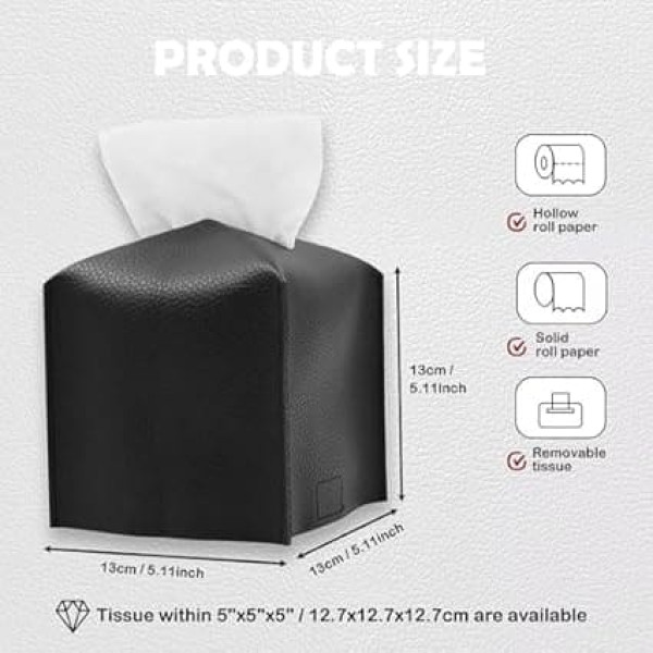Stilvolle Aufbewahrung: Verkleiden Sie standardmäßige, quadratische Taschentuchboxen mit diesem stilvollen Bezug; verbergen Sie leicht Taschentuchboxen aus Pappe; das saubere, niedliche Design ist perfekt für den privaten oder gewerblichen Gebrauch; ergänzt jede Einrichtung. KLASSISCH & PRAKTISCH - Dieser Spender hat ein klassisches Design, das jede Badezimmereinrichtung ergänzt, von traditionell bis modern. Die transparente Kunststoffkonstruktion ermöglicht es Ihnen, leicht zu sehen, wie viele noch im Inneren sind und wann es Zeit ist, sie nachzufüllen. Der Halter hat ein klassisches Design mit einer glatten Oberfläche, wodurch er leicht zu reinigen und zu pflegen ist. Einfaches Nachfüllen: Offener Boden ermöglicht einen einfachen Austausch von leeren Taschentuchboxen – einfach die Abdeckung anheben und eine neue Box darunter platzieren; perfekt für Beistelltische, Nachttische, Arbeitsplatten, Waschtische und Schreibtische im ganzen Haus; Verwendung in Küche, Schlafzimmer, Wohnzimmer, Familienzimmer, Bastelraum, Badezimmer; perfekt für Ihr Zuhause, Büro, Auto, Geschäft oder Boutique. Bequem zu lagern und zu tragen: Taschentuchbox-Abdeckung ist aus hochwertigem Leder hergestellt; kann gefaltet und wieder in seine ursprüngliche Form gebracht werden, wenn sie verwendet wird. Obwohl es leichter als Kunststoff-, Metall-, Chrom-, Bronze-, Glas-, Spiegel-, Holz-, Bambus- und Rattan-Tuchabdeckungen ist, ist Leder robuster als Baumwoll- oder Leinenstoffbezüge und ist leicht mit einem feuchten Tuch zu reinigen. Fügen Sie jedem Raum eine dekorative Note hinzu: Diese stilvolle Interpretation der Taschentuchbox-Abdeckung verleiht Ihrem Schlafzimmer, Badezimmer oder jedem anderen Raum Ihres Hauses oder Büros eine dekorative Note. In verschiedenen Farben erhältlich. › See more product details; Product description Verleihen Sie Ihrem Raum einen Hauch von Stil und Eleganz mit dieser Taschentuchbox-Abdeckung. Maße: 12,7 x 12,7 x 12,7 cm, passt in die meisten quadratischen Standard-Tücherboxen und ergänzt jede Raumdekoration. Hergestellt aus hochwertigem Leder, ist dieser Bezug sowohl langlebig als auch leicht mit einem feuchten Tuch zu reinigen. Das Design mit offenem Boden ermöglicht ein schnelles und einfaches Nachfüllen, wodurch es perfekt für Beistelltische, Nachttische, Arbeitsplatten und mehr ist. Leicht und dennoch stabil, ideal für Zuhause, Büro oder sogar im Auto. Erhältlich in mehreren Farben, passend zu Ihrem Stil.; Product description Verleihen Sie Ihrem Raum einen Hauch von Stil und Eleganz mit dieser Taschentuchbox-Abdeckung. Maße: 12,7 x 12,7 x 12,7 cm, passt in die meisten quadratischen Standard-Tücherboxen und ergänzt jede Raumdekoration. Hergestellt aus hochwertigem Leder, ist dieser Bezug sowohl langlebig als auch leicht mit einem feuchten Tuch zu reinigen. Das Design mit offenem Boden ermöglicht ein schnelles und einfaches Nachfüllen, wodurch es perfekt für Beistelltische, Nachttische, Arbeitsplatten und mehr ist. Leicht und dennoch stabil, ideal für Zuhause, Büro oder sogar im Auto. Erhältlich in mehreren Farben, passend zu Ihrem Stil.; Verleihen Sie Ihrem Raum einen Hauch von Stil und Eleganz mit dieser Taschentuchbox-Abdeckung. Maße: 12,7 x 12,7 x 12,7 cm, passt in die meisten quadratischen Standard-Tücherboxen und ergänzt jede Raumdekoration. Hergestellt aus hochwertigem Leder, ist dieser Bezug sowohl langlebig als auch leicht mit einem feuchten Tuch zu reinigen. Das Design mit offenem Boden ermöglicht ein schnelles und einfaches Nachfüllen, wodurch es perfekt für Beistelltische, Nachttische, Arbeitsplatten und mehr ist. Leicht und dennoch stabil, ideal für Zuhause, Büro oder sogar im Auto. Erhältlich in mehreren Farben, passend zu Ihrem Stil.
