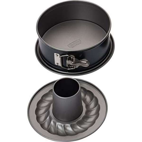 Leak-proof. Good non-stick properties. With a recipe booklet (English language not guaranteed). Made in Germany. › See more product details; Product description Product Description Whether the cake succeeds is not only a question of skill, but also and above all the right baking mould. With the Kaiser Inspiration collection, you are on the safe side. For sweet or savoury creations, you can easily access a wide range of high-quality baking moulds: from the bundt pan to the king cake pan to the tart tray. And if it's just a little surprise, simply take the mini versions for half recipe quantities at hand. The high standard in quality and workmanship ensures optimal heat distribution. In addition, all springform pans are leak-proof and extremely comfortable when opening and closing. And thanks to the good non-stick coating, the cake can be easily removed from the mould. With Inspiration's small baking moulds, the little bakers become big stars. With the baking moulds and baking aids, children have the right helper in the ideal size at hand. Bake great treats together with your children. All molds and baking utensils can be used for baking like large molds. With a spring form pan, the side wall can be loosened using a tension lever: the ring opens and you can remove the bottom of the mould and also clamp it back in. With a flat base, cakes and cake bases can be used in the springform pan. The base with central fireplace replaces a wreath mould for stirring cakes and bundt cakes. Unlike other baking moulds, the ready-baked cake from the springform pan will not be overturned. Instead, loosen the tension lever - the cake releases by itself thanks to the non-stick coating - and lift the ring upwards. Since the lower carrier plate is slightly larger than the ring, springform baking moulds are completely leak-proof. They are available in different sizes and shapes, for example round, square or in heart shape. Brand Description Die Marke Kaiser steht für Leidenschaft beim Backen und Liebe zum Selbstgemachten, für Inspiration, Kreativität und Genuss. Seit mehr als 90 Jahren ist die Marke Kaiser ein verlässlicher Partner in der heimischen Backstube und bietet das passende Equipment zum Vorbreiten, Backen, Dekorieren und Servieren. Die Marke Kaiser produziert in Diez/Lahn und ist Teil der WMF Group mit Sitz in Geislingen an der Steige.Als Wilhelm Ferdinand Kaiser 1919 im Erzgebirge einen Großhandel für Metallwaren gründet, ist das der Beginn eines unvergleichlichen Aufstiegs vom Kleinbetrieb zum Marktführer für Backformen und Backzubehör. Nach dem 2. Weltkrieg bei Null angefangen, expandiert das Unternehmen schnell. 1963 wird der Standort nach Diez an der Lahn verlagert, dem heutigen Firmensitz. Kaiser unterhält technologisch hochentwickelte Produktionsstätten und verkauft in 50 Länder in Europa und Übersee. Innovatives Denken und Investitionen in die Zukunft, gekoppelt an langjährige Erfahrung und technisches Know-how, sind die Maxime für eine Reihe von sensationellen Neuentwicklungen: 1968 bringt Kaiser die erste teflonbeschichtete Backform heraus, 1984 die Premium-Backformen-Serie La Forme. Auch nachdem die WMF AG die Geschäftsanteile 2002 übernimmt, agiert Kaiser weiterhin eigenständig am Markt. Inzwischen gehören Backformen in allen Varianten, Ausstecher und Backhelfer unterschiedlicher Materialien zum Repertoire. Legal Disclaimer No legal notice Box Contains 1x kleine Kuchenform mit Flachboden, für Kuchen/Tortenböden (Ø 20 cm, Füllmenge 1,8l), 1x Rohrboden, für Rührkuchen/Guglhupf (Ø 20 cm) See more; Product description Product Description Whether the cake succeeds is not only a question of skill, but also and above all the right baking mould. With the Kaiser Inspiration collection, you are on the safe side. For sweet or savoury creations, you can easily access a wide range of high-quality baking moulds: from the bundt pan to the king cake pan to the tart tray. And if it's just a little surprise, simply take the mini versions for half recipe quantities at hand. The high standard in quality and workmanship ensures optimal heat distribution. In addition, all springform pans are leak-proof and extremely comfortable when opening and closing. And thanks to the good non-stick coating, the cake can be easily removed from the mould. With Inspiration's small baking moulds, the little bakers become big stars. With the baking moulds and baking aids, children have the right helper in the ideal size at hand. Bake great treats together with your children. All molds and baking utensils can be used for baking like large molds. With a spring form pan, the side wall can be loosened using a tension lever: the ring opens and you can remove the bottom of the mould and also clamp it back in. With a flat base, cakes and cake bases can be used in the springform pan. The base with central fireplace replaces a wreath mould for stirring cakes and bundt cakes. Unlike other baking moulds, the ready-baked cake from the springform pan will not be overturned. Instead, loosen the tension lever - the cake releases by itself thanks to the non-stick coating - and lift the ring upwards. Since the lower carrier plate is slightly larger than the ring, springform baking moulds are completely leak-proof. They are available in different sizes and shapes, for example round, square or in heart shape. Brand Description Die Marke Kaiser steht für Leidenschaft beim Backen und Liebe zum Selbstgemachten, für Inspiration, Kreativität und Genuss. Seit mehr als 90 Jahren ist die Marke Kaiser ein verlässlicher Partner in der heimischen Backstube und bietet das passende Equipment zum Vorbreiten, Backen, Dekorieren und Servieren. Die Marke Kaiser produziert in Diez/Lahn und ist Teil der WMF Group mit Sitz in Geislingen an der Steige.Als Wilhelm Ferdinand Kaiser 1919 im Erzgebirge einen Großhandel für Metallwaren gründet, ist das der Beginn eines unvergleichlichen Aufstiegs vom Kleinbetrieb zum Marktführer für Ba