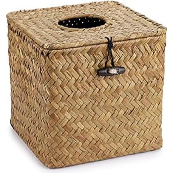 SUMTree Taschentuchbox aus Rattan, quadratischer Spender, Papierbox, Schreibtisch-Organizer für Badezimmer, Wohnzimmer, Schlafzimmer, Garten (gelb)
