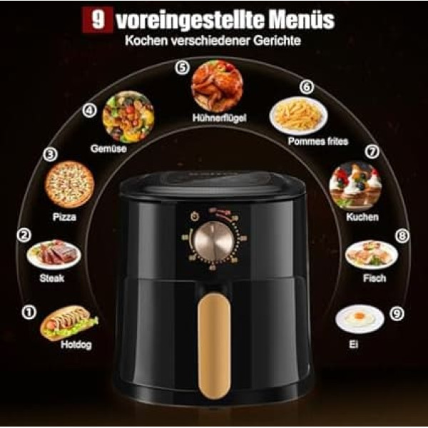 4L Hot Air Fryer, with Manual Rotary Button, Dishwasher Safe, Healthy Cooking Without Oil and Low Fat, 1500 W, Black