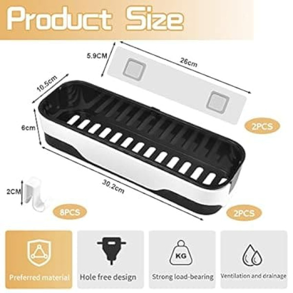Thickened material and high load capacity: our shower shelves are made of high-quality ABS material with smooth edges that are less likely to break or deform, making them durable. The upgraded adhesive strips have stronger adhesion, and the white bathroom wall shelf has a load capacity of 10 kg and will not fall off even when rinsing with water. Large capacity and raised rail: you will receive two high-quality, non-porous plastic storage shelves that can hold most of your kitchen items and spices and can easily hold shampoo, shower gel, soap, detergent and more. Thanks to the raised guides, you no longer have to worry about falling objects and can use it more calmly. Double layer and hollow bottom: with up to 14 drainage holes on the bottom, this shower shelf provides maximum ventilation and drainage to prevent bacterial growth and keep your shower clean and dry. The shower caddy has a removable double layer design that makes daily cleaning easier - simply remove the top shelf and rinse it with water to keep it fresh. No drilling and no damage to the wall: no installation tools are required, simply peel off the adhesive film, stick to a smooth wall and press for a few seconds. Finally, leave for 24 hours to ensure better adhesion. Even if it is removed, it will not cause damage to the wall. (Note: keep the wall dry and level before installation). Ideal bathroom holder: the set contains 2 double-tier bathroom shelves (30.7 x 10.5 x 6 cm) with a removable combination and 4 removable hooks. With a simple and generous design, it is not only suitable for the bathroom, but also for kitchen, bathroom, balcony and laundry room and makes storage a pleasure! › See more product details