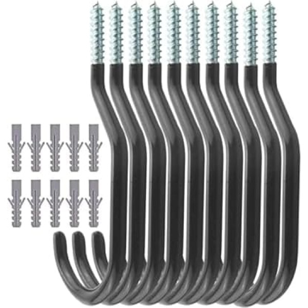 TooTaci Bike Hanger, 10 Pack Heavy Duty Wall & Ceiling Hooks PVC Coated Screw Hooks for Secure Bike Storage, Space Saving Solution for Garage & Shed, Black