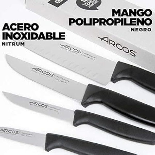 Knife Set Bows | Professional Kitchen Knife | Japanese Knife Professional Kitchen Knife Arches | Stainless Steel | High Performance | Black Handle Chef's knife, chef's knife, kitchen knife, japones knife, bread knife, vegetables and hair knife Eco packaging: packed in a box, 100% recycled, by people with disabilities 10 year manufacturer warranty Arcos | 100% reliability of the product. Made in Spain › See more product details