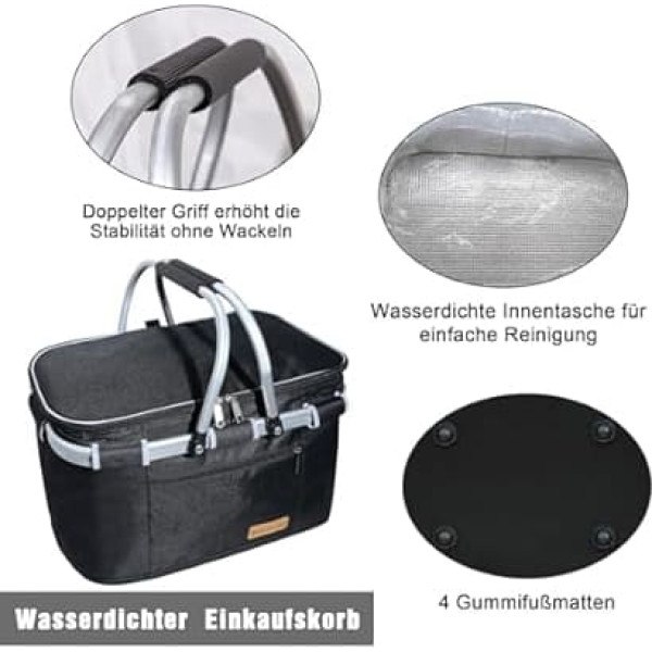 Double handle structure: the top of the cooler bag has a foldable double handle structure, which is more stable than shopping baskets with just one handle and does not wobble. You can buy up to 25 kg in the basket without the basket wobbling or tipping over! Improved overall stability and durability: the folding support rods on both sides keep the shopping basket foldable stable, and the plastic base prevents excess items from collapsing. 4-hour insulation and 100% waterproof: the Peva inner bag is waterproof and easy to clean. You can put ice cubes directly into the inner bag without leaking. 3 mm thick tin foil pearl wadding ensures the best taste of your food. Lightweight and practical large capacity: the size of the shopping basket (42 cm x 24.5 cm x 25 cm) can be folded to only 5 cm, weighs only 500 g and has a capacity of 26 litres, which holds 20 x 300 ml beer. This makes it a perfect mum basket that you can give to your friends and family as Christmas gifts for women for a dinner together Multi-scenario function: lunch, picnic, music festival, fishing, storage, camping ice cream bag, farmer basket, supermarket shopping, outdoor travel, reusable bag. › See more product details