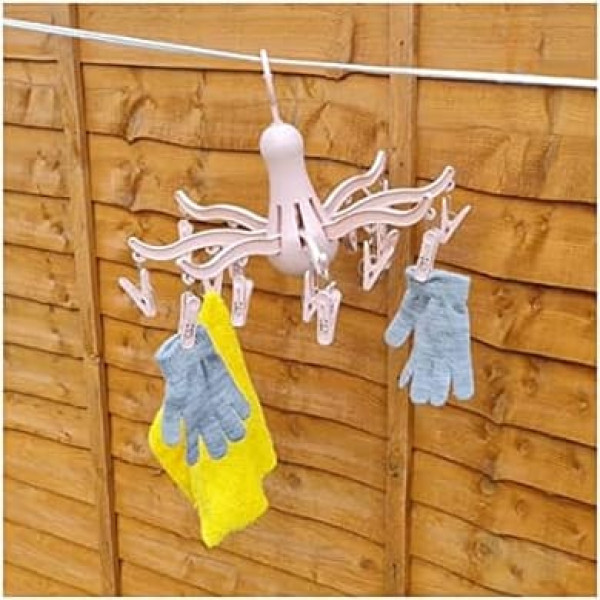 AAHO IT'S ALL ABOUT HOME Octopus Hanging Dryer 8 Claws with 16 Clothes Pegs, Easy to Fold and Store Clothes Airer, Indoor and Outdoor Drying Hanger, Space Saving, Compact Design (Pink)