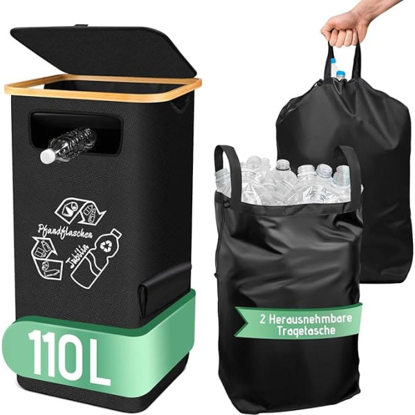 Large capacity: the capacity deposit bottles collection container 110 litres and can hold 30-40 empty bottles to provide enough space for your recyclable bottles. Includes: 1 x deposit bottle collection container, 4 x support rods, 2 x inner pockets. Odour protection design: deposit bottles storage extremely creative design with an automatic closing lid that prevents unpleasant odours from escaping. So you can easily put the bottles in without having to open the lid. Waterproof design: the deposit bottle container is made of high-quality polyester fibre fabric, which is durable and waterproof. It can be easily wiped clean to prevent splashing of oil and other dirt. Easy portability: the deposit bottle collection container has a foldable function. The integrated carrying bag for the bottle collection box is easy to install and remove. There are two inner bags that are replaceable, and the handles of the inner bags have a drawstring to ensure that the bottles do not fall out in the car or elsewhere. Versatile use: the empty bottle collector can not only be used to store various bottles, but also hold dirty clothes, toys, clothes, pet supplies and serve as a toy basket, laundry basket, pet supplies shelf, etc. to provide you with a variety of storage solutions. › See more product details