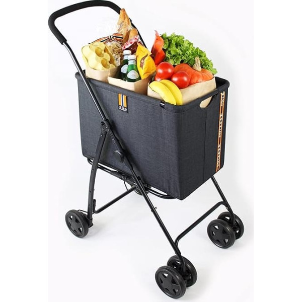 Material: The removable basket is made of high-quality, durable polyester - robust and easy to clean. You can use it together with the frame or individually. Remove the basket to unpack at the kitchen table! Mobility: The agile 360° swivel wheels are puncture-proof and extremely manoeuvrable. They can be locked into the forward position to improve handling on uneven ground. Versatile: the trolley is extremely versatile. Not only for shopping, but also as a perfect companion for a picnic in the park or a beach day with the whole family. Practical: the Mila can be easily rolled and ensures a comfortable shopping experience without having to carry heavy shopping bags - ideal for shopping routes even by bus and train. Easy to use: the large XL shopping basket can be easily removed and washed or steamed with a damp cloth. Mila shopping cart can be folded to save space. › See more product details