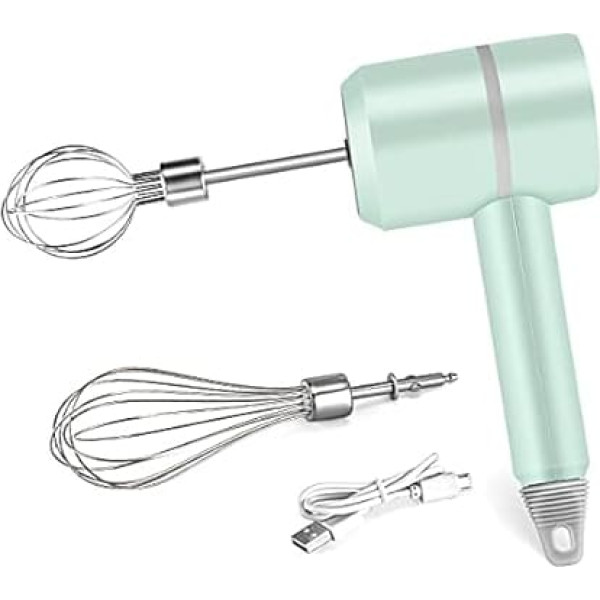 Portable & Versatile Electric Whisk This handheld blender includes 1 x electric mixer, 2 x removable stirrers, 1 x USB charging cable, compact structure, and easy to carry. You can use these hand mixers at home, in the office or outdoors. Easy to use and store hand mixer: the cordless electric whisk is easy to use without the interference of wires and there are hanging holes at the end of the electric mixer, and the hand whisk only needs to be hung on the wall for storage after use DURABLE & HEAT RESISTANT ELECTRIC MIXER The electric whisk uses a 304 stainless steel double whisk, this non stick electric hand mixer will not mold, chip, crack, deform, absorb or discolor odors. The hand blender is designed for durability and quality you can trust Safe hand mixer: the electric whisk is charged via USB. You will not get electric shock from damage to the wire or some accidents when using the electric mixer, and this electric hand broom has overload protection, which is safe and reliable Professional hand whisk: the electric whisk has a flexible 3-speed adjustment function, a button to control the electric mixer, and the 3-speed function is different, you can use the different speeds of the whisk to make different food ingredients › See more product details; Product description This hand mixer is not only used in the kitchen, you can use it in the living room, office or even when travelling and camping. This wireless electric whisk is convenient to carry and it is more convenient to charge. You can use the socket to charge normally, or use a computer, power bank, car and other mobile power sources to charge the electric mixer. This hand mixer features a powerful motor that delivers food in 60 seconds, professionally designed, 3 gears flexible speed control, long battery life, and an electric whisk that can be used continuously for about 60 minutes when fully charged. The electric hand whisk is easy to disassemble and assemble, ready to use, the two stirrers of the hand stirrers have different functions. Hand mixer material: 304 stainless steel double stirrer. Hand mixer size: Main unit: 95 x 65 x 205 mm, Stirring rod: 170 x 60 mm/165 x 50 mm. Rated Power: 20W Charging time: approx. 4 hours. Continuous working hours when fully charged: 15 times (approx. 4 minutes per time). Package Included: 1 x Electric Whisk (Host + 2 Stirrers + USB Charging Cable + Manual English language not guaranteed). Note: 1. The hand stirrer stick is removable, you just need to install the stirrer stick on the host to work when using the electric whisk. 2. The hand mixer must press the switch twice in a row to start working, and then every time you press it, the electric hand mixer increases the speed by one speed, the highest speed is the third speed, and press it again to stop.; Product description This hand mixer is not only used in the kitchen, you can use it in the living room, office or even when travelling and camping. This wireless electric whisk is convenient to carry and it is more convenient to charge. You can use the socket to charge normally, or use a computer, power bank, car and other mobile power sources to charge the electric mixer. This hand mixer features a powerful motor that delivers food in 60 seconds, professionally designed, 3 gears flexible speed control, long battery life, and an electric whisk that can be used continuously for about 60 minutes when fully charged. The electric hand whisk is easy to disassemble and assemble, ready to use, the two stirrers of the hand stirrers have different functions. Hand mixer material: 304 stainless steel double stirrer. Hand mixer size: Main unit: 95 x 65 x 205 mm, Stirring rod: 170 x 60 mm/165 x 50 mm. Rated Power: 20W Charging time: approx. 4 hours. Continuous working hours when fully charged: 15 times (approx. 4 minutes per time). Package Included: 1 x Electric Whisk (Host + 2 Stirrers + USB Charging Cable + Manual English language not guaranteed). Note: 1. The hand stirrer stick is removable, you just need to install the stirrer stick on the host to work when using the electric whisk. 2. The hand mixer must press the switch twice in a row to start working, and then every time you press it, the electric hand mixer increases the speed by one speed, the highest speed is the third speed, and press it again to stop.; This hand mixer is not only used in the kitchen, you can use it in the living room, office or even when travelling and camping. This wireless electric whisk is convenient to carry and it is more convenient to charge. You can use the socket to charge normally, or use a computer, power bank, car and other mobile power sources to charge the electric mixer. This hand mixer features a powerful motor that delivers food in 60 seconds, professionally designed, 3 gears flexible speed control, long battery life, and an electric whisk that can be used continuously for about 60 minutes when fully charged. The electric hand whisk is easy to disassemble and assemble, ready to use, the two stirrers of the hand stirrers have different functions. Hand mixer material: 304 stainless steel double stirrer. Hand mixer size: Main unit: 95 x 65 x 205 mm, Stirring rod: 170 x 60 mm/165 x 50 mm. Rated Power: 20W Charging time: approx. 4 hours. Continuous working hours when fully charged: 15 times (approx. 4 minutes per time). Package Included: 1 x Electric Whisk (Host + 2 Stirrers + USB Charging Cable + Manual English language not guaranteed). Note: 1. The hand stirrer stick is removable, you just need to install the stirrer stick on the host to work when using the electric whisk. 2. The hand mixer must press the switch twice in a row to start working, and then every time you press it, the electric hand mixer increases the speed by one speed, the highest speed is the third speed, and press it again to stop.