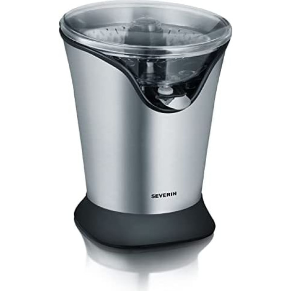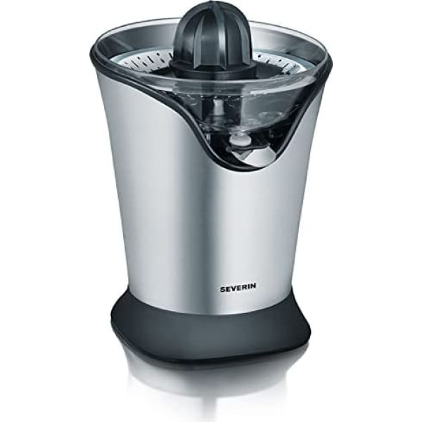 For daily vitamin boost in the morning and dressings: electric citrus juicer for healthy and refreshing fruit juice from citrus fruits Delicious citrus taste without effort: ideal for numerous citrus fruits thanks to 2 different sized press cones, easy to catch the juice in the glass thanks to the practical spout opening Easy to use: quick switching on by pressing the press cone, practical stainless steel spout with drip stop Practical storage compartment for press cones, high-quality stainless steel housing, dishwasher-safe stainless steel sieve, easy to clean by hand Box contents: 1 SEVERIN citrus press, CP 3534, material: stainless steel/plastic, weight: 1.69 kg, colour: brushed stainless steel black › See more product details