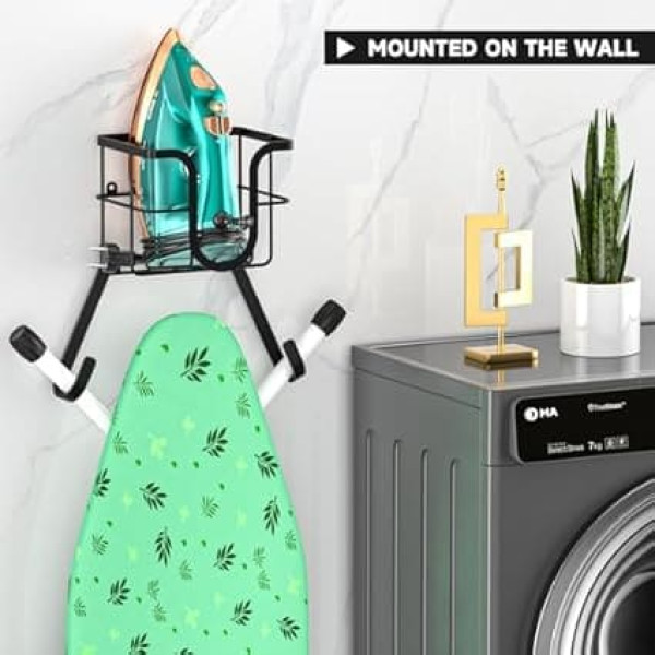 Versatile ironing board hanger: the ironing board hanger wall hanger. It can be attached to the wall or hung on the door, the interior of the iron holder with a storage compartment is 5.2 x 5.3 x 5.8 inches, the \