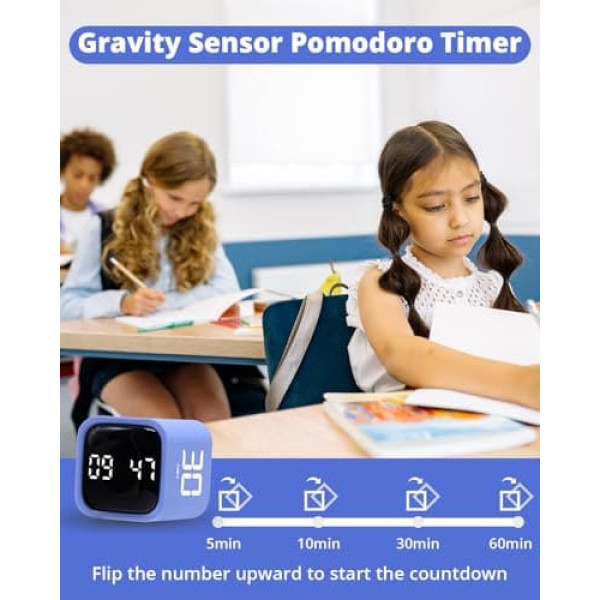 Productivity Timer, Flip Gravity Sensor, Cube Timer, Countdown and Countup, Mute, Vibrates and Sound, 5/10/30/60 Minutes & Custom Timing, Perfect for ADHD, Work, Learning, Kitchen
