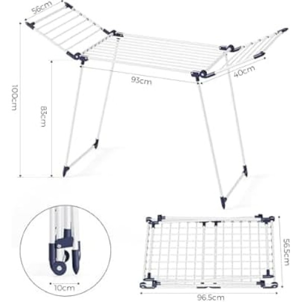 Large drying capacity: the size of this clothes airer is 175 x 60 x 105 cm. There are 10 long bars and 14 short bars in the clothes airer, which can be used to dry 34 garments or even more. It can fully meet the drying needs of the whole family COLLAPSIBLE WITHOUT TAKING UP SPACE Our clothes airer folds easily and is very thin after folding. It can be leaned against the corner of the balcony without taking up space at all Thickened Material High Quality This clothes airer is made of thickened metal tube and hard plastic. It can ensure the overall stability and robustness of the drying rack, and the material is rust-proof, which can be used both indoors and outdoors NO INSTALLATION REQUIRED: You don't need to assemble the clothes airer by yourself when you receive it, you can open and use it in just 3 simple steps. Our connecting fittings are fitted to move silky smooth and do not jam at all Gentle drying of clothes: the drying rod of the clothes drying rack is thickened, hanging clothes on it will not appear wrinkles at all, and it can dry our clothes very gently. There is also a wide interval between the rods, which can ensure ventilation and airy, and can dry clothes faster › See more product details