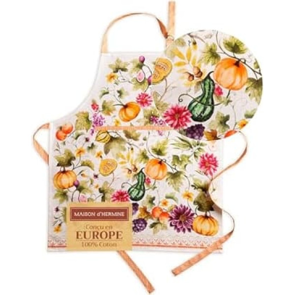 Maison d'Hermine 100% Cotton 1-Piece Kitchen Apron with Adjustable Neck and Middle Pocket, Long Ties for Women/Men, Cooking, Thanksgiving/Christmas
