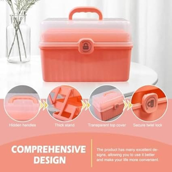 3 Layer Medicine Box:MaxEarn medicine box with a size of 12.6 x 7.1 x 8.66 inch, three layers double open storage, layered design, can easily store a variety of medicines or other items. Comes with an extra small medication box for easy carrying of daily medications High Quality Material The medicine box is made of PP material, which is healthy, environmentally friendly and has no odor, sealed against moisture. The bracket is thickened, with stronger load capacity, durable, drop-proof and longer service life. Rotary lock design: our medicine storage box is equipped with a safety lock, and the twist lock design opens counterclockwise and closes clockwise, which can effectively prevent accidental opening. Portable Design The medicine cabinet organizer adopts an invisible handle design, making it easy to carry when going out. The transparent lid makes the medications visible at a glance, so you can easily identify and isolate the items in the box and prepare medications in time to ensure you can quickly find the right medicine or equipment in an emergency. MULTIPURPOSE This medicine box can not only be used as a first aid box storage box, but also has a good appearance and can be used as a storage box for household items. Ideal for everyday tools, medicines, cosmetics, sewing supplies and more. › See more product details; Product description Feature: The three-layer medication storage box with large capacity has double openings for storage and storage and can store a variety of different medications. The material is made of high quality PP, which is environmentally friendly and odourless. The thickened bracket is more stable and has a long service life. The twist lock design prevents accidental opening and the invisible handle makes it more convenient to carry when going out. (br) The transparent lid makes it easy to find medications and can also refill used medications in time. Comes with a small medicine box for easy storage and carrying daily medication. Multifunctional storage box can also store food, stationery, cosmetics, clothes, tools and accessories, etc. Product Features: Material: PP material Color: Pink and Clear Dimensions: 32 x 18 x 22 cm. Package includes: 1 x Medicine Storage Box 1 x Small Pill Box; Product description Feature: The three-layer medication storage box with large capacity has double openings for storage and storage and can store a variety of different medications. The material is made of high quality PP, which is environmentally friendly and odourless. The thickened bracket is more stable and has a long service life. The twist lock design prevents accidental opening and the invisible handle makes it more convenient to carry when going out. (br) The transparent lid makes it easy to find medications and can also refill used medications in time. Comes with a small medicine box for easy storage and carrying daily medication. Multifunctional storage box can also store food, stationery, cosmetics, clothes, tools and accessories, etc. Product Features: Material: PP material Color: Pink and Clear Dimensions: 32 x 18 x 22 cm. Package includes: 1 x Medicine Storage Box 1 x Small Pill Box; Feature: The three-layer medication storage box with large capacity has double openings for storage and storage and can store a variety of different medications. The material is made of high quality PP, which is environmentally friendly and odourless. The thickened bracket is more stable and has a long service life. The twist lock design prevents accidental opening and the invisible handle makes it more convenient to carry when going out. (br) The transparent lid makes it easy to find medications and can also refill used medications in time. Comes with a small medicine box for easy storage and carrying daily medication. Multifunctional storage box can also store food, stationery, cosmetics, clothes, tools and accessories, etc. Product Features: Material: PP material Color: Pink and Clear Dimensions: 32 x 18 x 22 cm. Package includes: 1 x Medicine Storage Box 1 x Small Pill Box