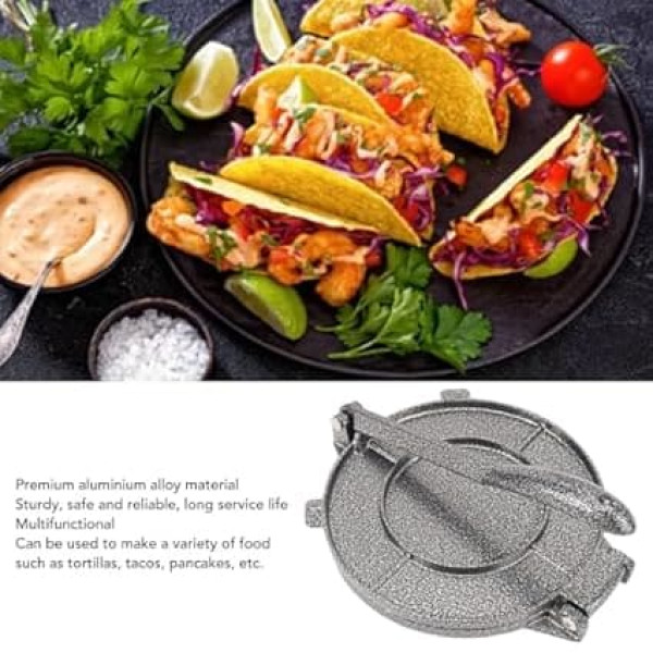 [Versatile tool for different taste preferences] This versatile tool is ideal for preparing various flatbreads such as corn tortillas, tacos, roti and pancakes and covers a range of taste preferences. [Easy to use manual design] With its simple manual press design, this tortilla maker is suitable for home kitchen and blends seamlessly into your breakfast routine. Premium aluminium alloy construction: This tortilla press made of high-quality aluminium alloy is erosion-resistant, safe and reliable and ensures a long service life. [Compact and Efficient] Measuring 20 x 16 cm, this compact tortilla squeezer is easy to move and allows you to effortlessly prepare crispy tortillas with a delicious texture. [Comfortable Handle for Efficient Pressing] Equipped with a comfortable handle for easy gripping, this taco press is sturdy, efficient and resistant to deformation, making pressing tortillas a breeze. › See more product details; Product description 1. Aluminum Alloy Material This tortilla press is made of high quality aluminum alloy and is erosion resistant, safe, reliable and designed for long lasting durability. 2. Manual Press Design With its simple and practical design of manual press, this tortilla maker is excellent for use in the home kitchen and is a great addition to your breakfast routine. 3. STURDY HANDLE Equipped with a comfortable handle for easy gripping, this taco press is sturdy, efficient and resistant to deformation, which increases the efficiency of pressing tortillas. 4. COMPACT SIZE Measuring at 20 x 16 cm, this compact tortilla squeezer is easy to move and allows you to effortlessly prepare crispy tortillas with a delicious texture. 5. MULTI-FUNCTIONAL Ideal for making various types of flatbreads such as corn tortillas, tacos, roti and pancakes. This versatile tool meets different taste preferences. Specification: Item type: tortilla press Material: aluminium alloy. Weight: approx. 419.00 g / 14.78 ounces. Product size: approx. 20 x 16 cm / 7.9 x 6.3 inches. Packing list: 1 x tortilla press. 1 x handle; Product description 1. Aluminum Alloy Material This tortilla press is made of high quality aluminum alloy and is erosion resistant, safe, reliable and designed for long lasting durability. 2. Manual Press Design With its simple and practical design of manual press, this tortilla maker is excellent for use in the home kitchen and is a great addition to your breakfast routine. 3. STURDY HANDLE Equipped with a comfortable handle for easy gripping, this taco press is sturdy, efficient and resistant to deformation, which increases the efficiency of pressing tortillas. 4. COMPACT SIZE Measuring at 20 x 16 cm, this compact tortilla squeezer is easy to move and allows you to effortlessly prepare crispy tortillas with a delicious texture. 5. MULTI-FUNCTIONAL Ideal for making various types of flatbreads such as corn tortillas, tacos, roti and pancakes. This versatile tool meets different taste preferences. Specification: Item type: tortilla press Material: aluminium alloy. Weight: approx. 419.00 g / 14.78 ounces. Product size: approx. 20 x 16 cm / 7.9 x 6.3 inches. Packing list: 1 x tortilla press. 1 x handle; 1. Aluminum Alloy Material This tortilla press is made of high quality aluminum alloy and is erosion resistant, safe, reliable and designed for long lasting durability. 2. Manual Press Design With its simple and practical design of manual press, this tortilla maker is excellent for use in the home kitchen and is a great addition to your breakfast routine. 3. STURDY HANDLE Equipped with a comfortable handle for easy gripping, this taco press is sturdy, efficient and resistant to deformation, which increases the efficiency of pressing tortillas. 4. COMPACT SIZE Measuring at 20 x 16 cm, this compact tortilla squeezer is easy to move and allows you to effortlessly prepare crispy tortillas with a delicious texture. 5. MULTI-FUNCTIONAL Ideal for making various types of flatbreads such as corn tortillas, tacos, roti and pancakes. This versatile tool meets different taste preferences. Specification: Item type: tortilla press Material: aluminium alloy. Weight: approx. 419.00 g / 14.78 ounces. Product size: approx. 20 x 16 cm / 7.9 x 6.3 inches. Packing list: 1 x tortilla press. 1 x handle