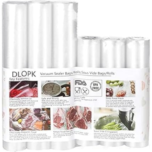 Keep fresher for longer: your food stays fresh up to 8 times in vacuo - naturally without preservatives. Start the freshness offensive and vacuum fresh meat, fruit or vegetables for storage in the fridge or freezer. Preserve the vitamins and minerals of the food itself - ideal protection against freezer burn and loss of taste. Material safety: B.P.A free, safe for use in microwave, cooking, refrigeration, or in your pantry, for sous vide cooking, can be tailored to your needs to ensure food safety and better preserve the original taste of the food, better storage of food to prevent the odour phenomenon in the fridge. Affordable and durable: DLOPK vacuum sealing film contains 6 packs, 3 packs of vacuum sealer film 20 x 300 cm, 3 packs 28 x 300 cm, you can adjust the length to the length of the bag you want to make (the length of the bag) Robust and tear-resistant: the material of the DLOPK vacuum rolls is very firm and tear-resistant (material thickness approx. 150 µm). Prevent bones or sharp objects such as bones from piercing. The fine ribbed structure and the stable weld seam create the best and even vacuum. Wide applicability: it can be used for all brands of vacuum sealer › See more product details